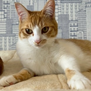 茶白の男の子です。とても人懐こく穏やかな性格。遊んだり構って貰うのが大好きです。